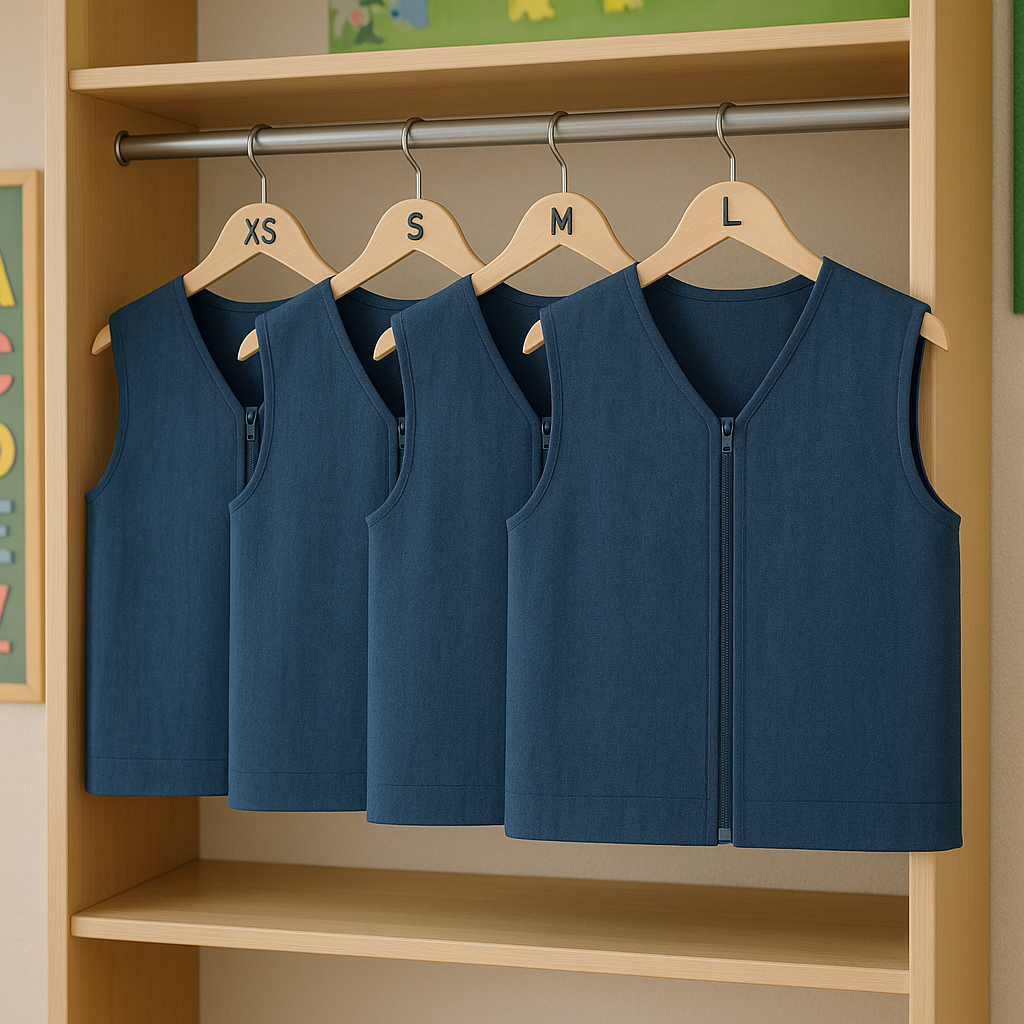 The weighted vest helps with concentration problems and is an ideal tool for children and adults who have difficulty processing stimuli. This can be due to autism, ADHD or a sensory integration disorder. The weighted vests also suitable for very active and mobile people who cannot always sit still at school or work. The weighted vest can be used in class, in therapy or in other situations where the user needs to sit still and concentrate. It can be used during lessons at school, at work in the office and of course in therapy.